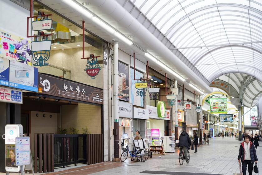 Since the Edo period, a collection of large retailers has been drawn to the Minamishinmachi area, and it has thrived ever since. It was the first area in Takamatsu to cover the shopping street. There are many popular Sanuki udon shops and restaurants along the street.